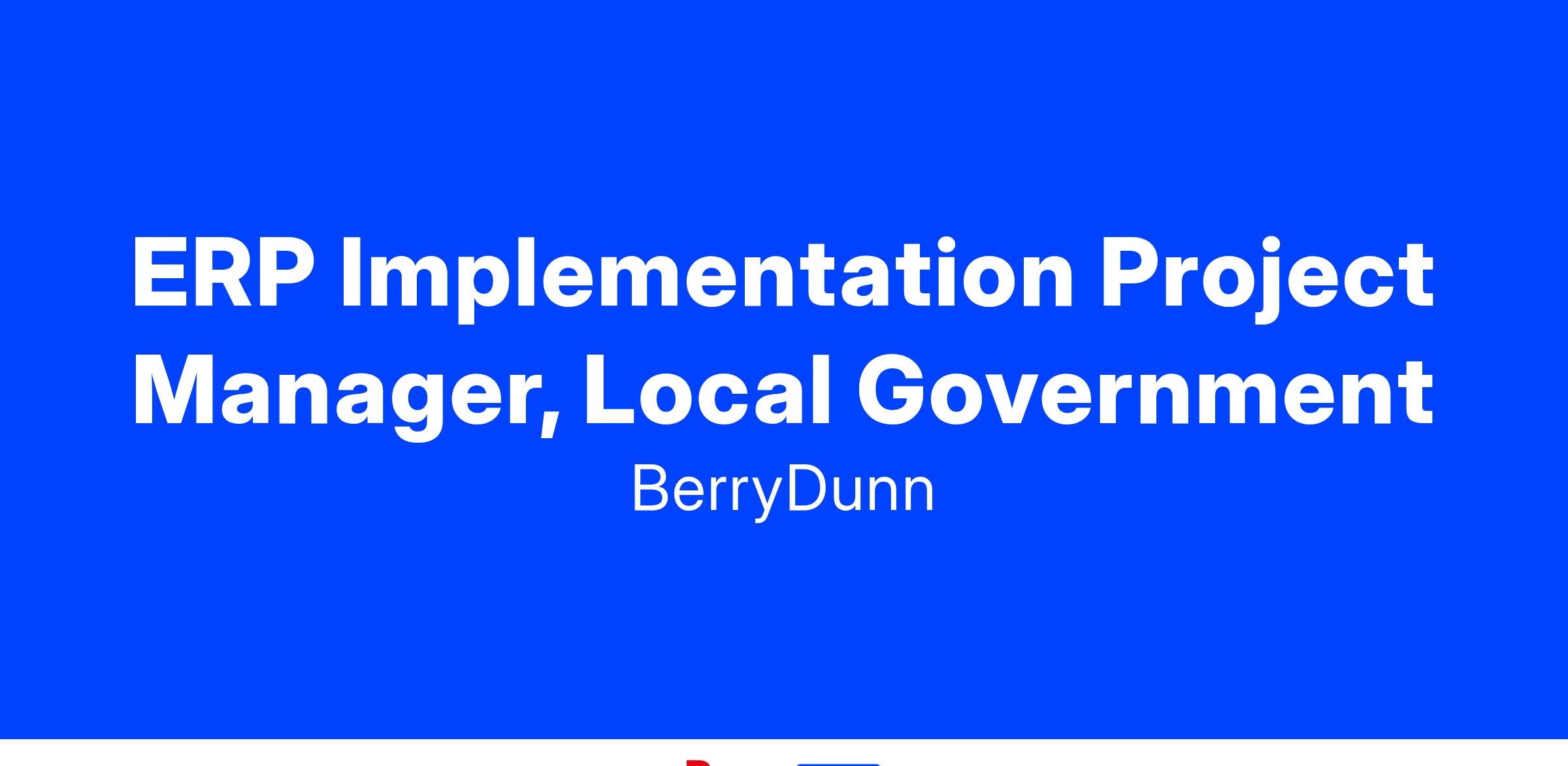 BerryDunn is seeking an ERP Implementation Project Manager to join our Local Government Practice Group within our Consulting Team. You will serve as our clientsβ Project Manager working with client and vendor teams as they implement enterprise software. This position is planned to remotely serve our client in California along with other Western regional clients. You will report to senior leaders in the Local Government Practice Group.