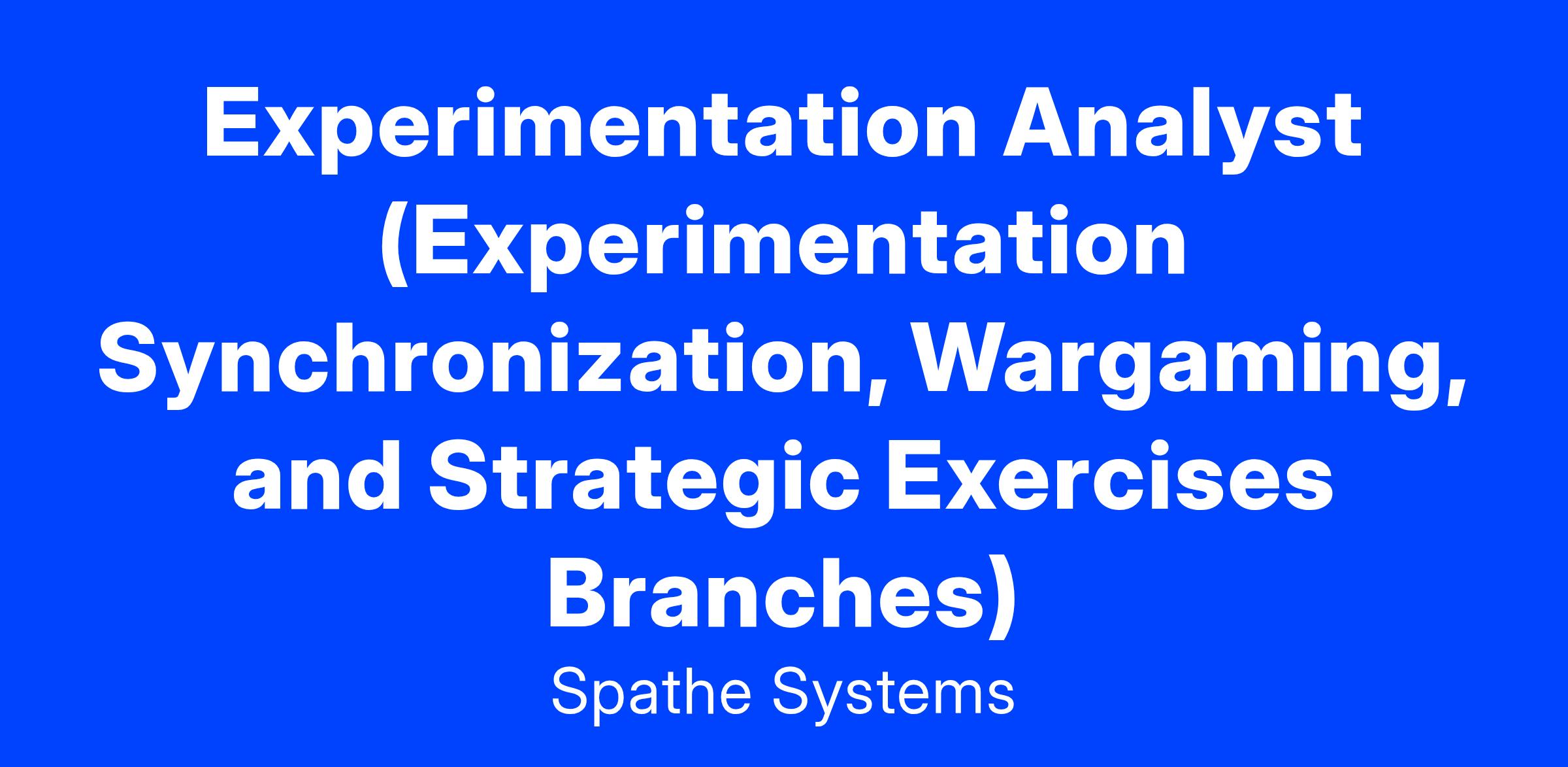 Spathe is currently searching for eight Experimenation Analyst (Experimentation Synchronization, Wargaming, and Strategic Exercises Branches)Β to join our team in the Tampa, FLarea.