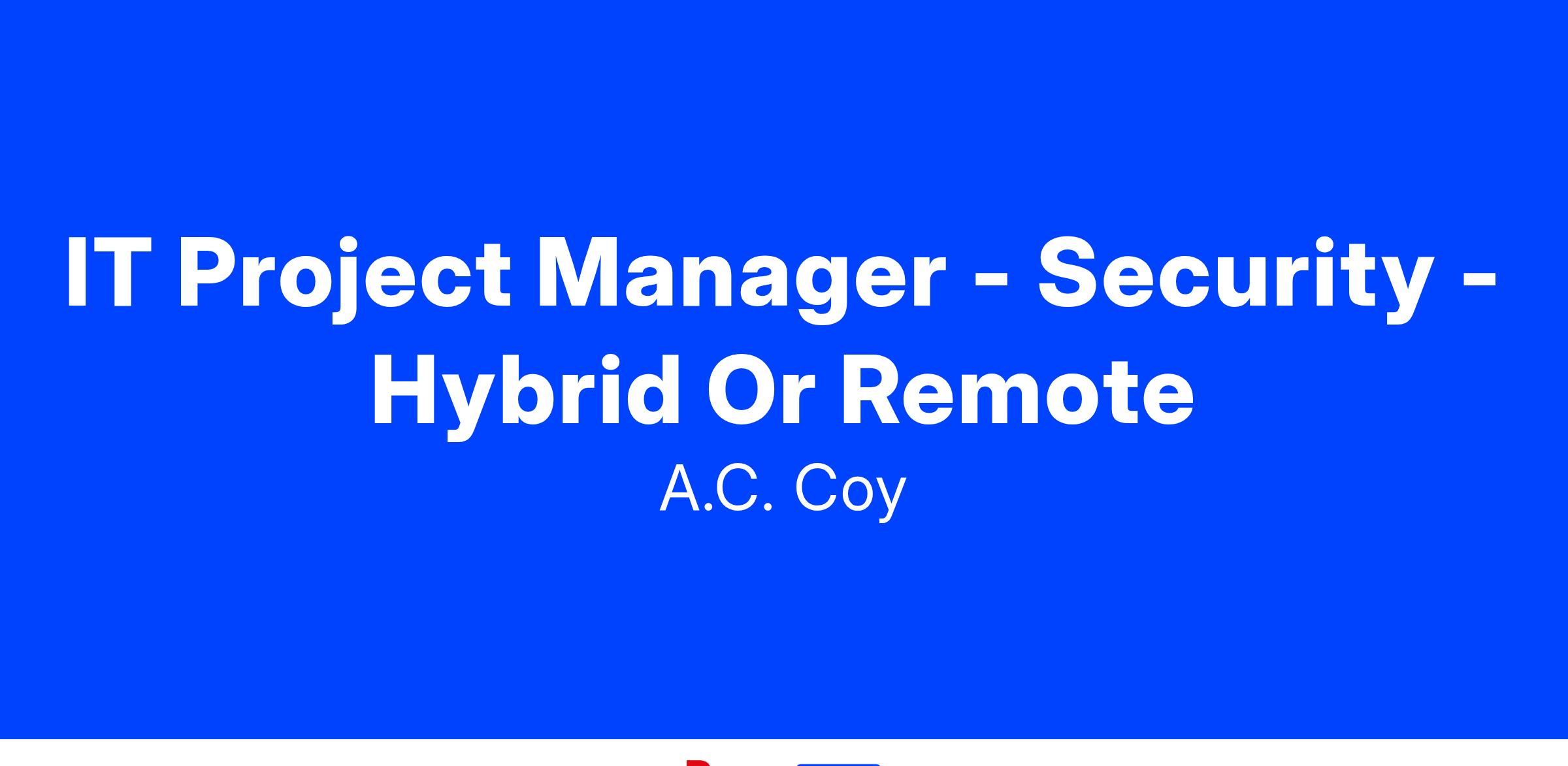 The A.C.Coy company has an immediate opening for an IT Project Manager.Β Ideal candidates will have 7+ years of IT project management experience.Β Experience managing IT Security Projects for a Financial Services organization is highly preferred.