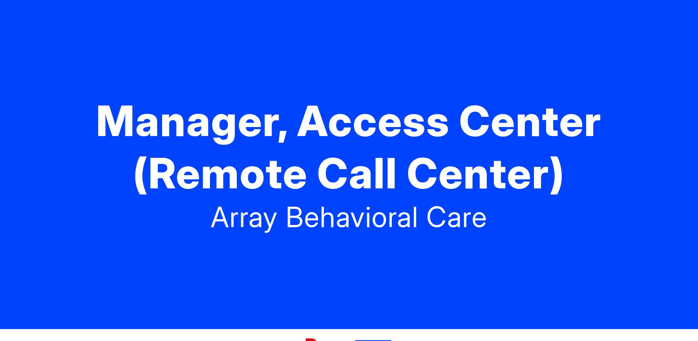 Array is looking for an experienced, empathic manager to hire, train, coach, and lead remote call center representatives as they provide support to hospital team members and clinicians of Array’s OnDemand virtual behavioral healthcare practice. The Manager of Access Center is responsible for the day-to-day operations of this vital team that functions much like a virtual call center. The Manager should be knowledgeable on the team’s operational tasks and will be responsible for overseeing and enhancing workflows, making data-driven decisions, providing coaching to team members, and working with stakeholders across the organization to ensure partner and patient satisfaction ensuring access to quality behavioral care. The Access Center Manager is responsible for the 100% virtual operational aspects of the Access Center and implementing several Access Center initiatives.   Â