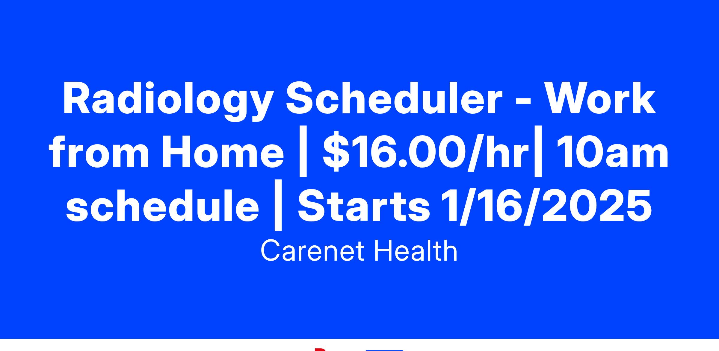 At Carenet Health, we value the expertise and dedication of our team members, and we are committed to offering anΒ appealingΒ compensation package. The wage for theΒ Radiology Scheduler roleΒ isΒ $16.00Β per hour.